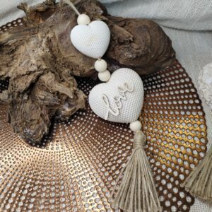 Suspension en Jesmonite – Deux Cœurs avec Écriture « Love »