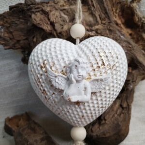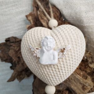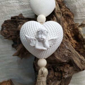 Suspension en Jesmonite – Deux Cœurs et Tête d’Ange