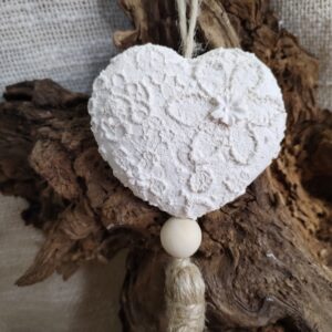 Suspension en Jesmonite – Coeur avec Relief de Fleurs de Lilas