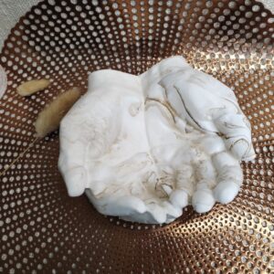 Vide-Poche Rond Dentelé en Jesmonite marbré beige feuille d’or