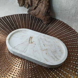 Plateau Ovale en Jesmonite Marbré Beige, Gris