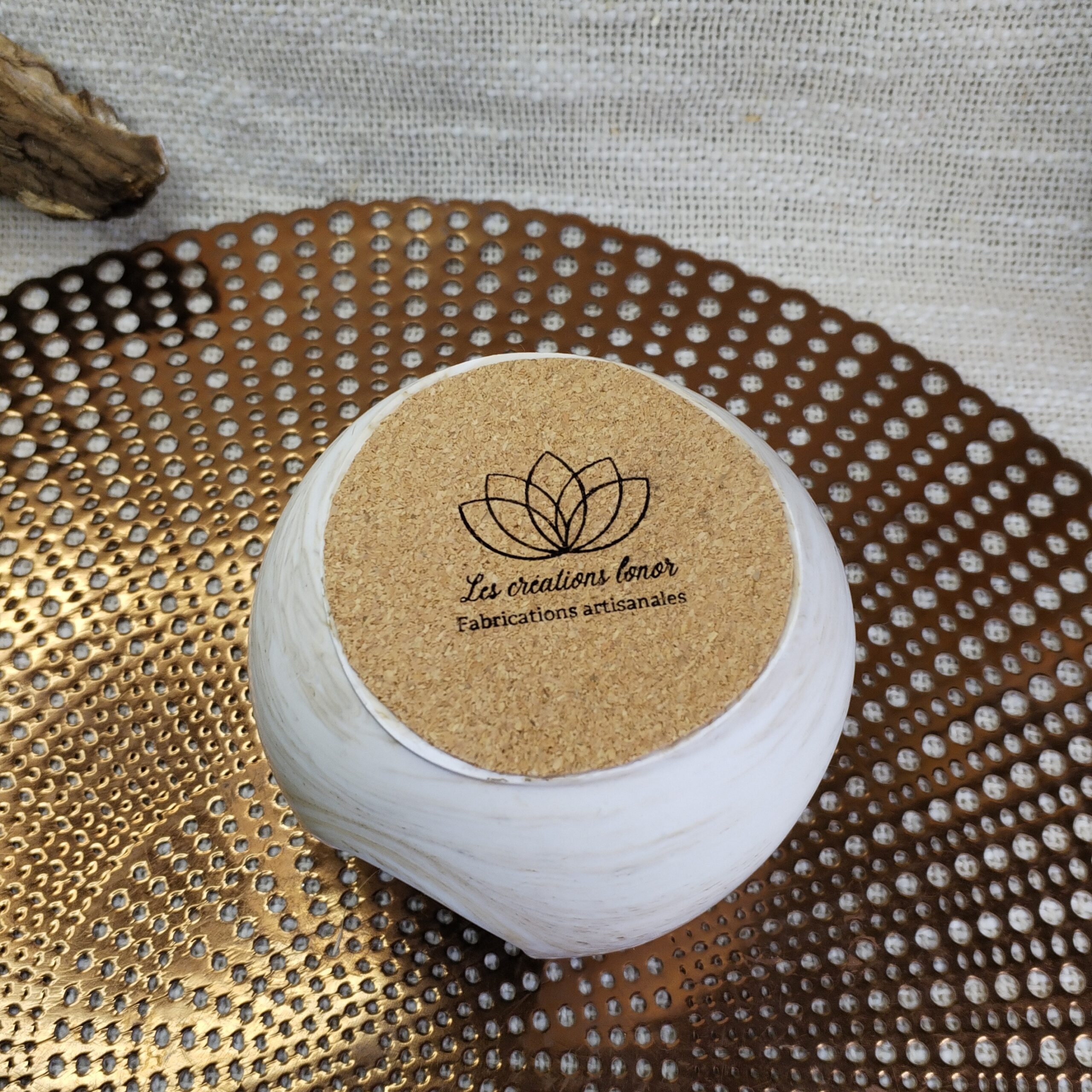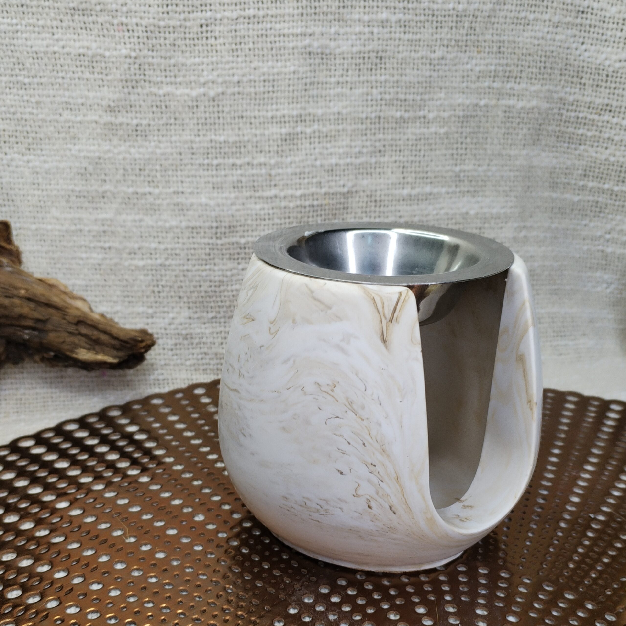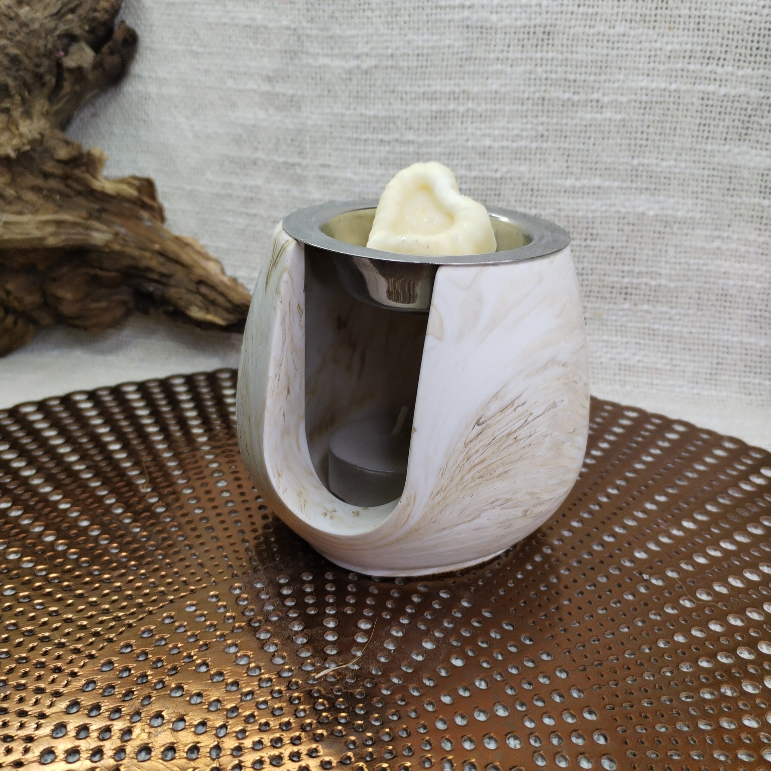 Brûleur de Fondant Parfumé en Jesmonite Beige Marbré – 10 cm x 9 cm – 500 g