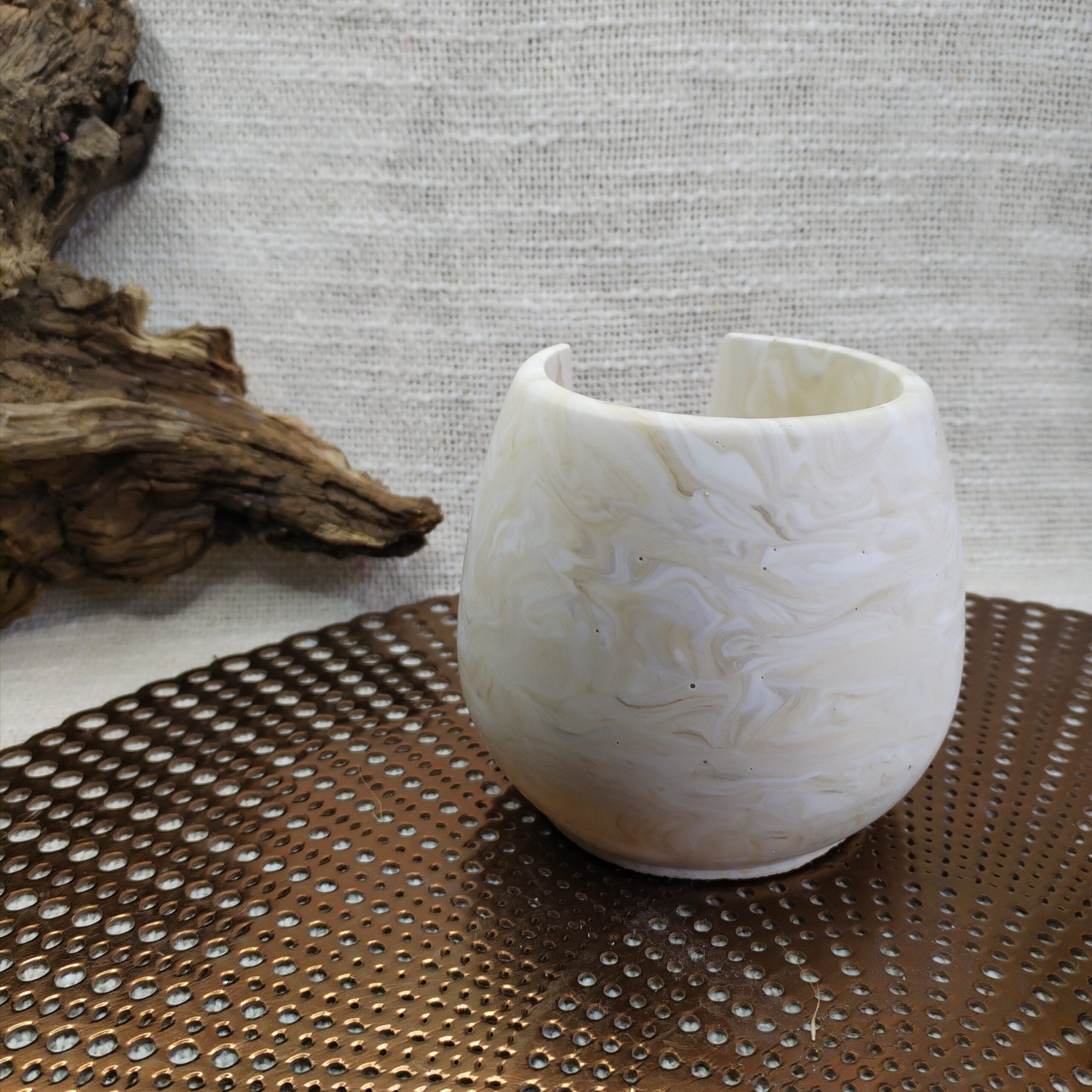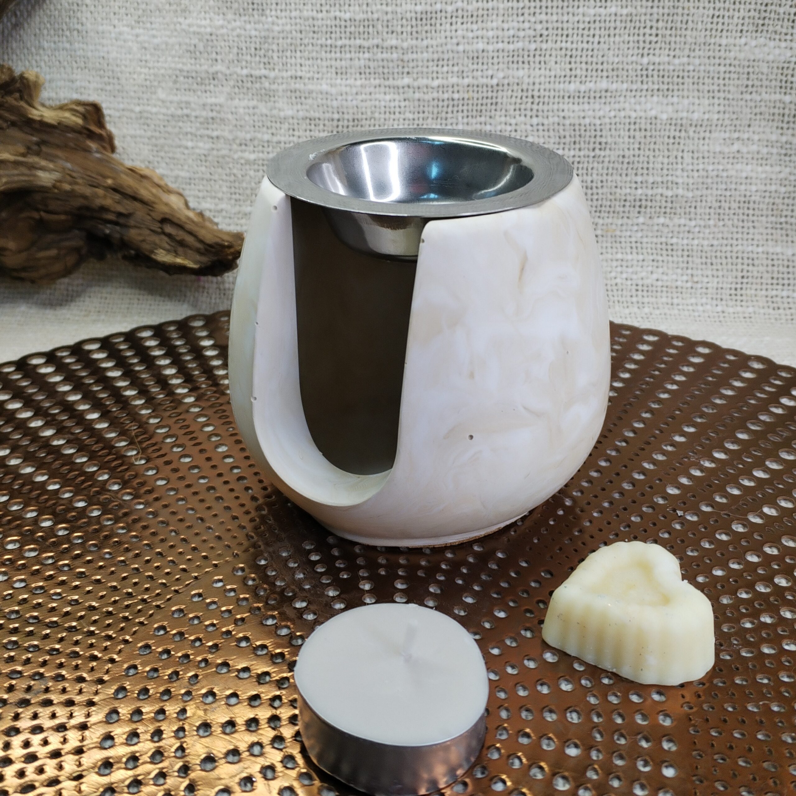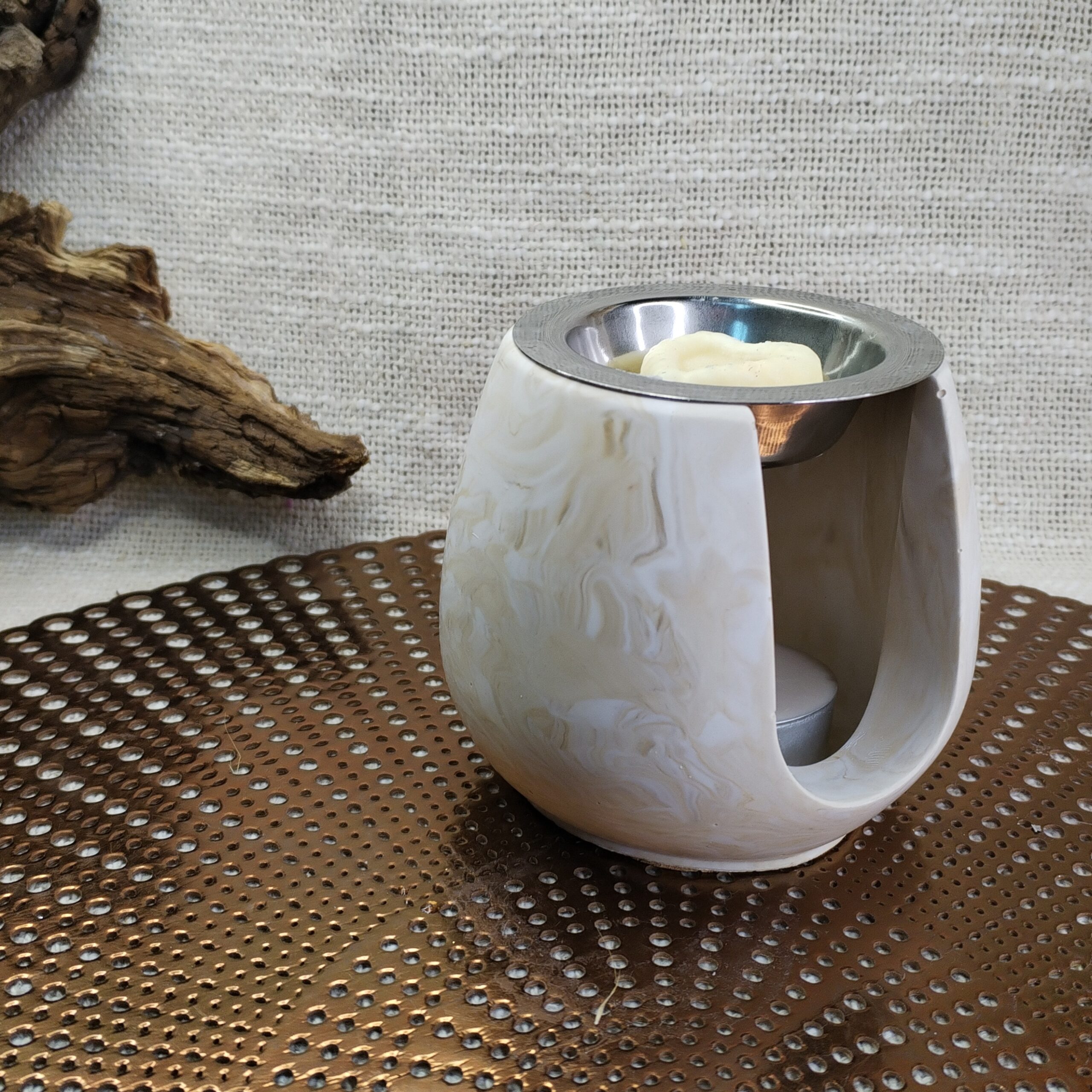 Brûleur de Fondant Parfumé en Jesmonite Beige Marbré – 10 cm x 9 cm – 500 g