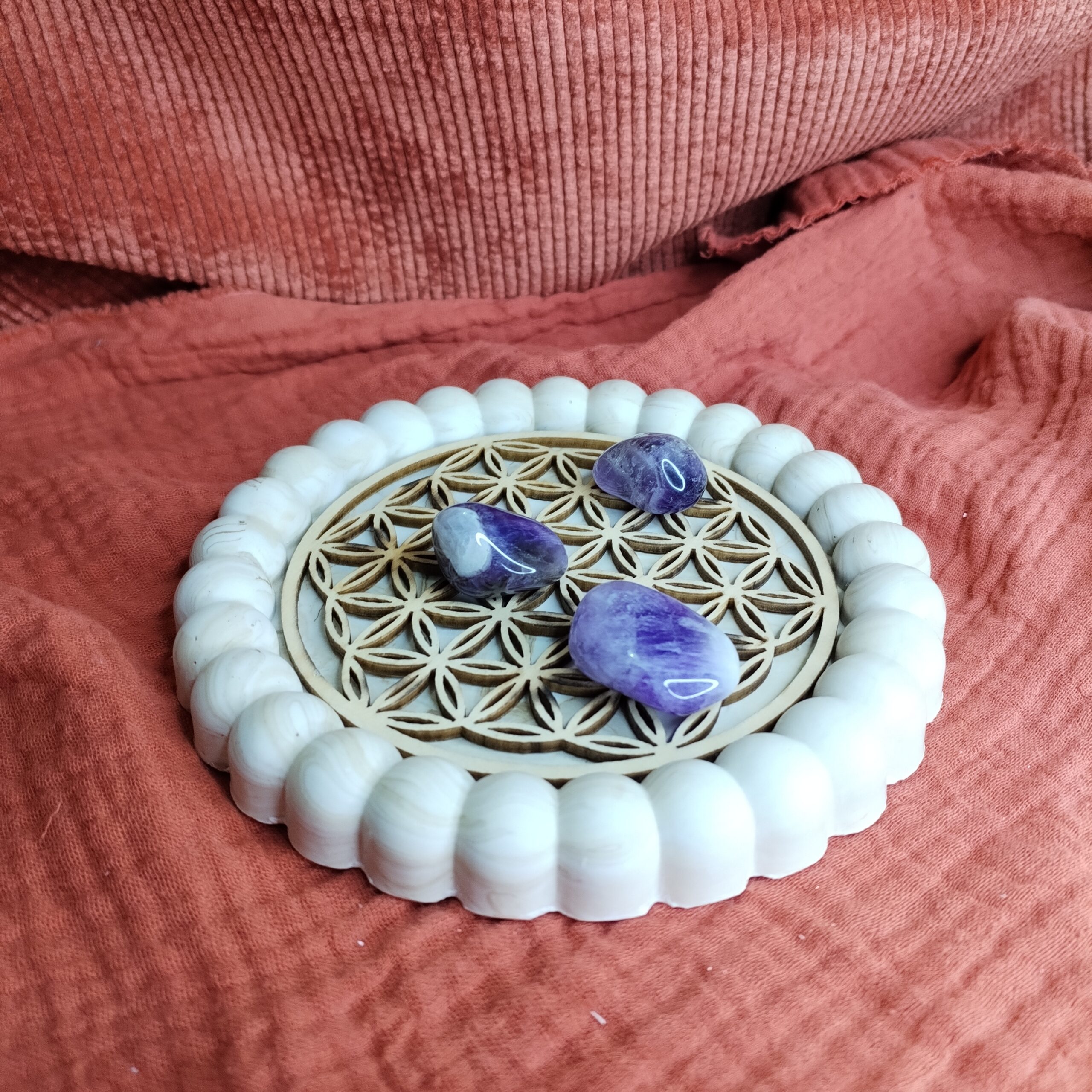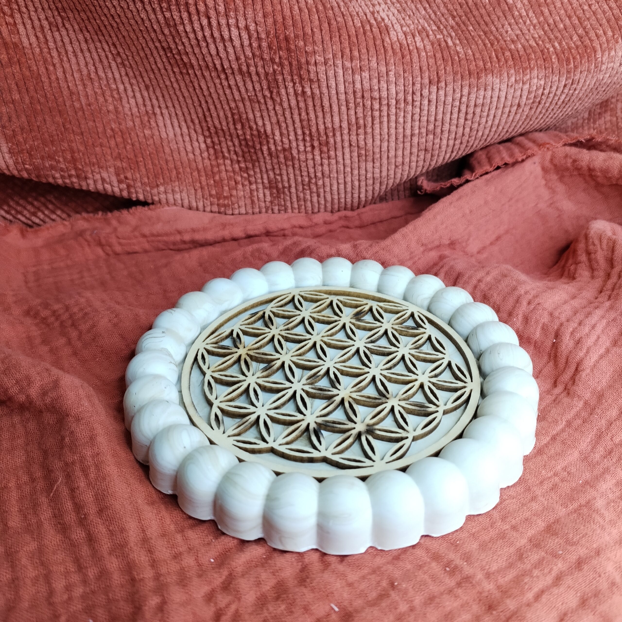 Plateau Bulle en Jesmonite avec Fleur de Vie – Plateau de Recharge pour Pierres Naturelles