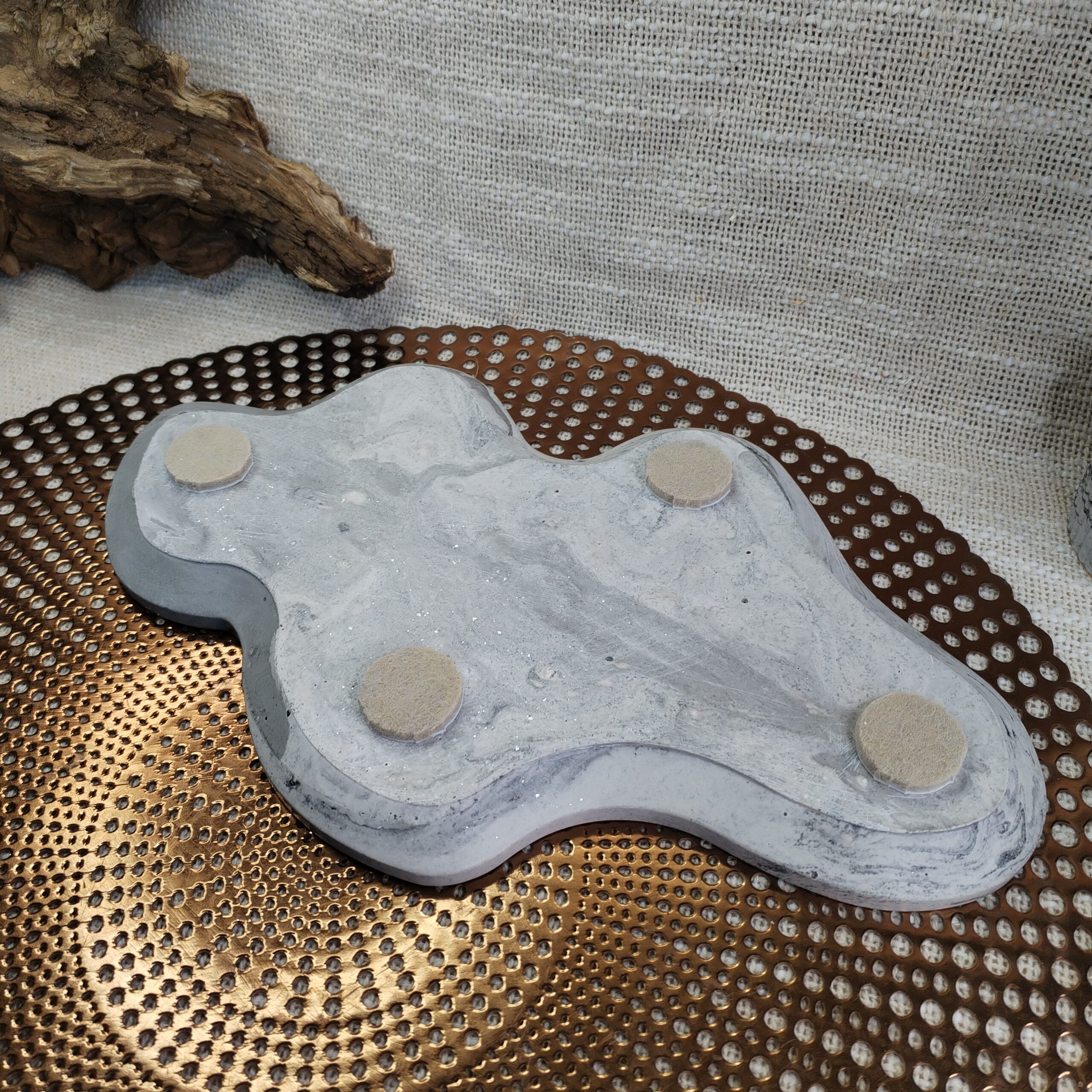 Plateau en Forme de Nuage en Jesmonite Marbré Gris
