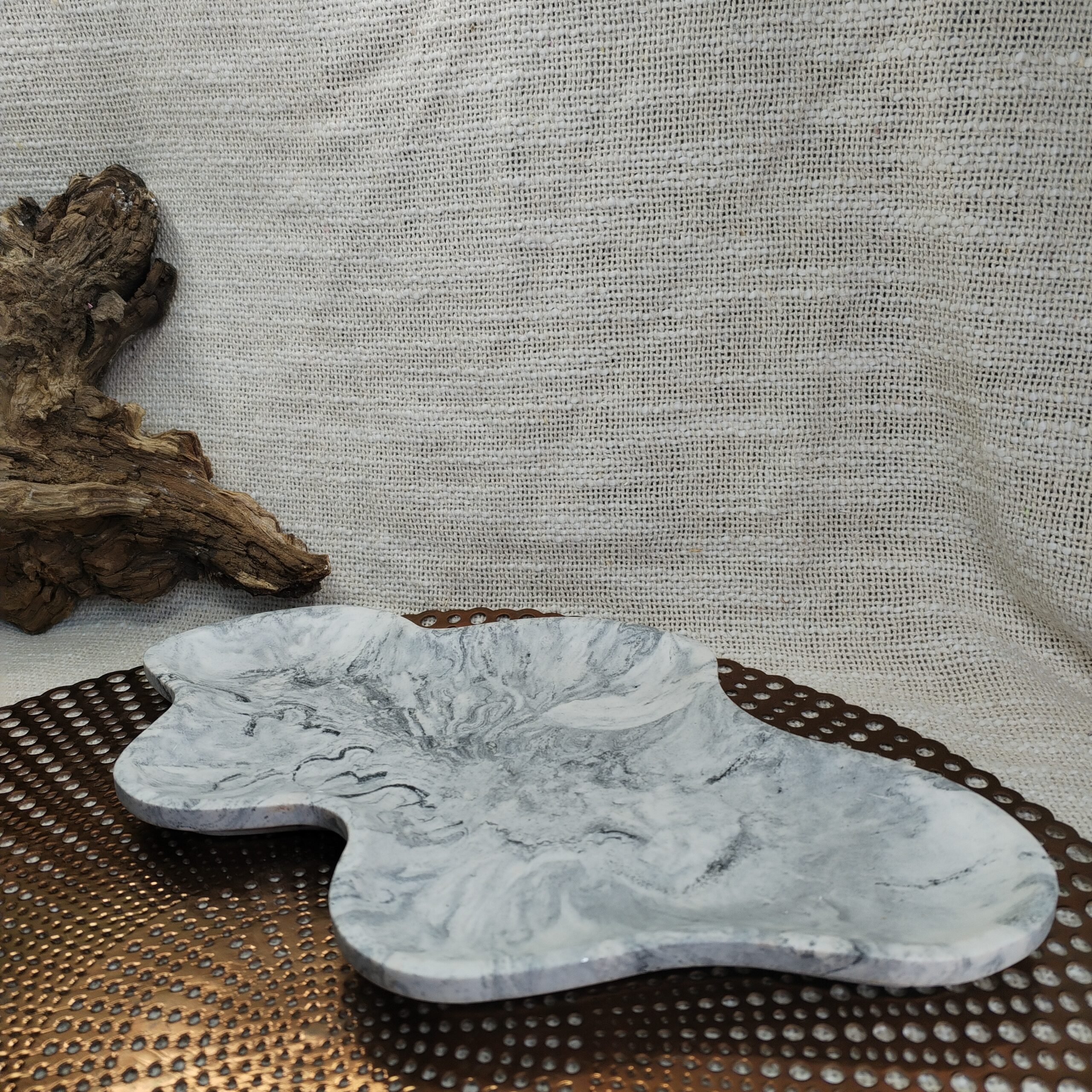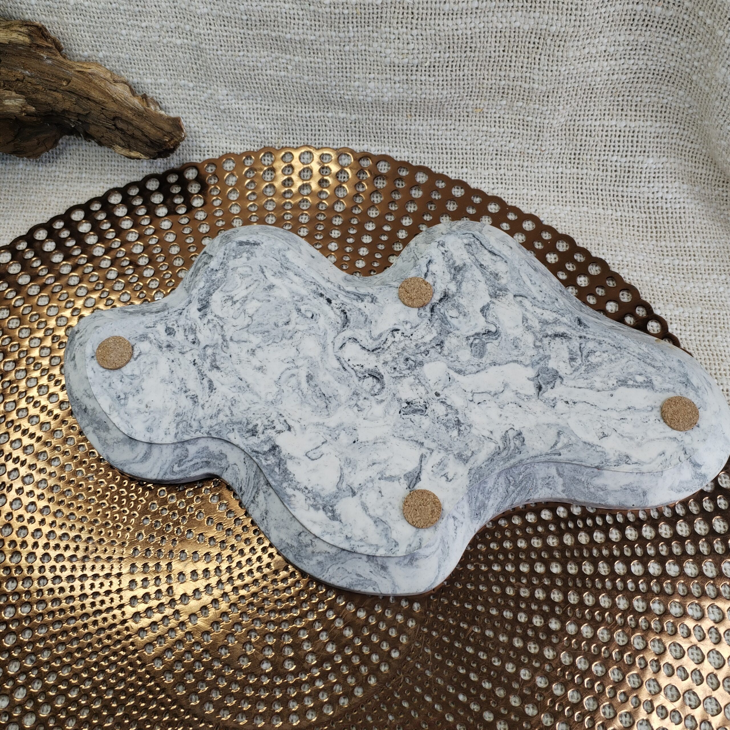Plateau en Jesmonite Marbré Gris en Forme de Nuage
