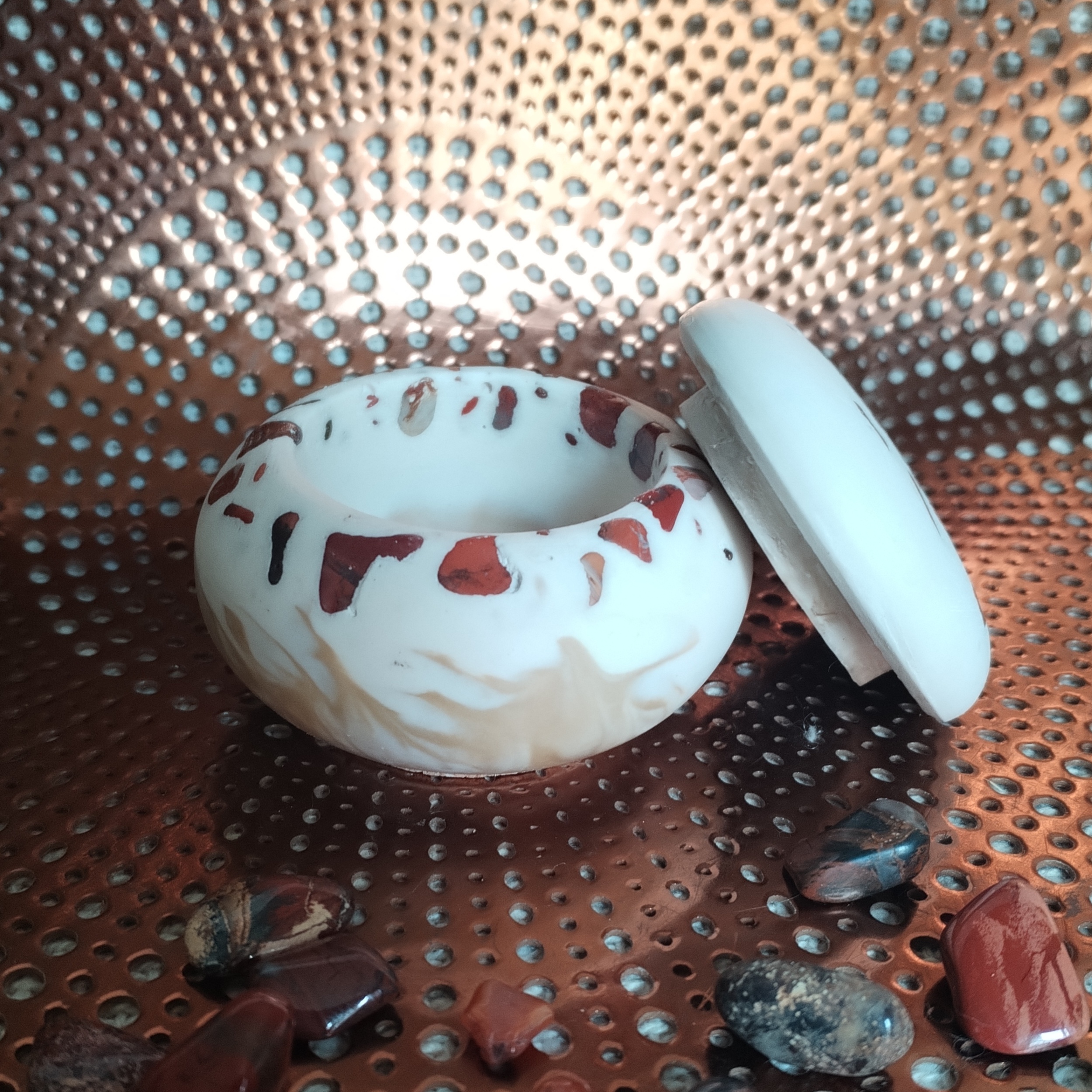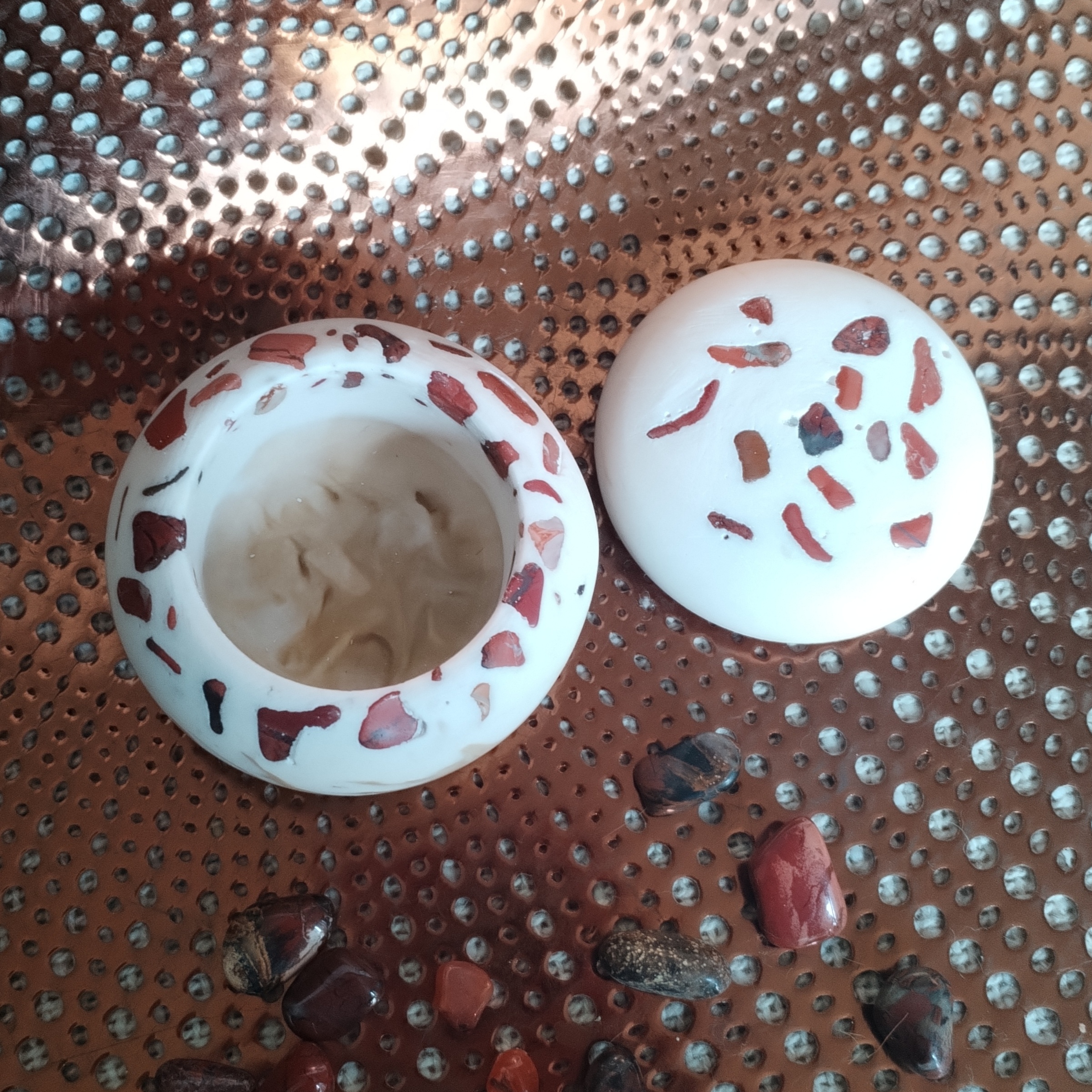 pot en jesmonite incrustation de pierre naturelle jaspe rouge provenance Afrique du sud
