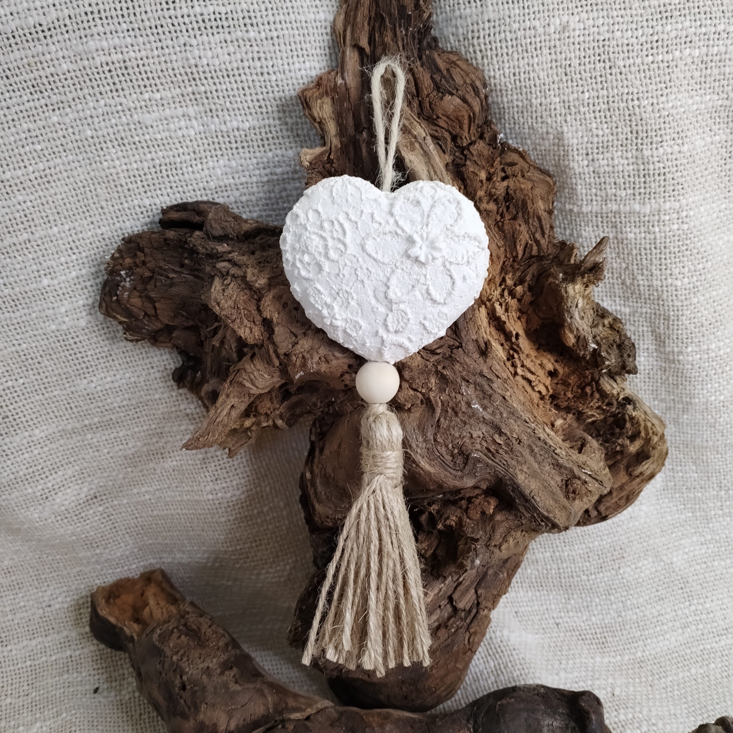Apportez une touche romantique et délicate à votre intérieur avec cette magnifique suspension en jesmonite. Elle présente un cœur délicatement sculpté avec des reliefs floraux, symbolisant l’amour et la beauté naturelle. Ce design épuré et poétique ajoutera une dimension élégante et raffinée à votre décoration. Parfaite pour sublimer n’importe quelle pièce, cette suspension allie douceur et originalité.